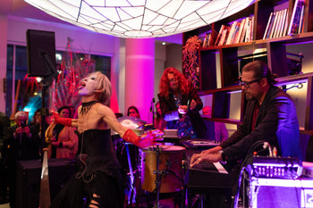 Nearly 400 invited guests filled Hotel AX, becoming part of a moment that blurred the boundaries between party and performance. From the very start the atmosphere was electric, oysters were served fresh, champagne poured freely, and the hotel’s interiors transformed into a stage for light, music, and surprise appearances. Performances carried late into the night, ensuring this was no ordinary launch but a creative happening in its own right.